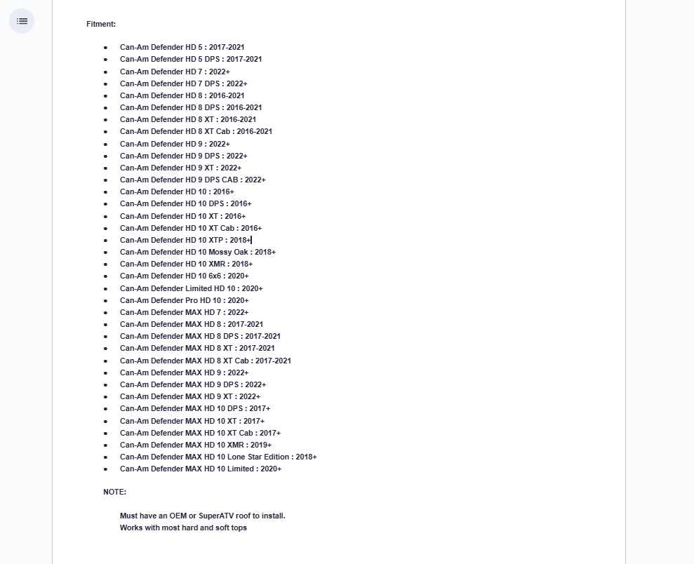 - Can-Am Defender MAX HD 10 XT Cab : 2017+
