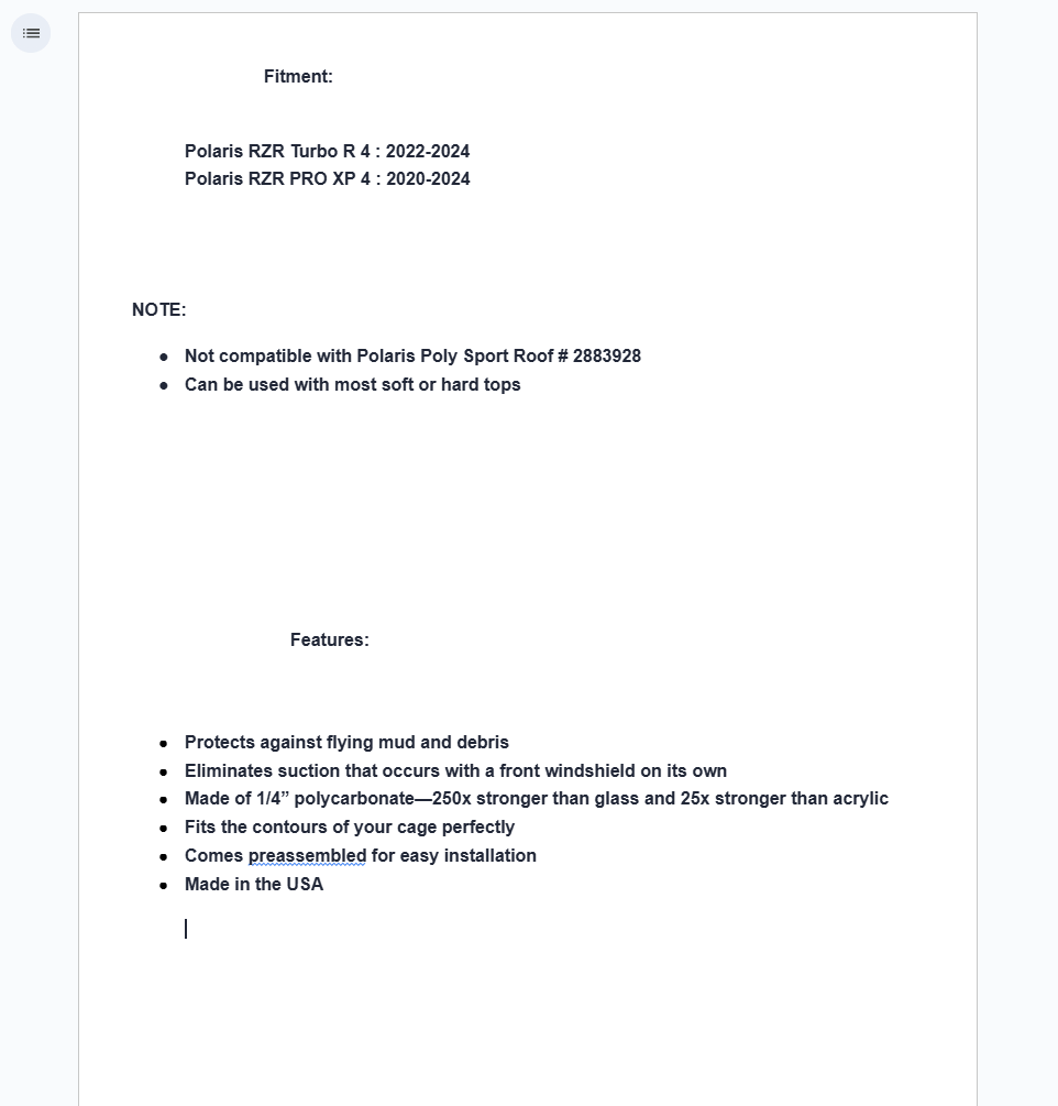 - Not compatible with Polaris Poly Sport Roof # 2883928