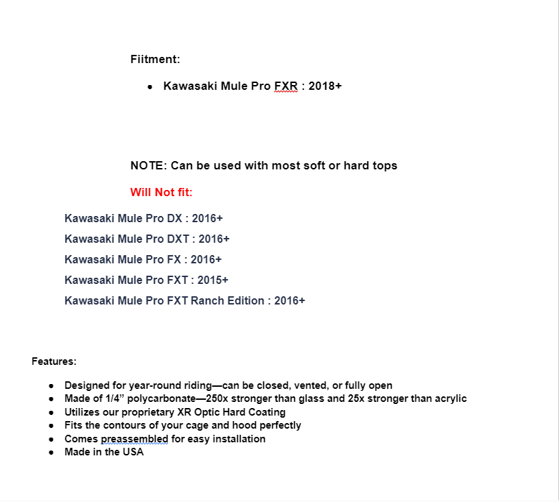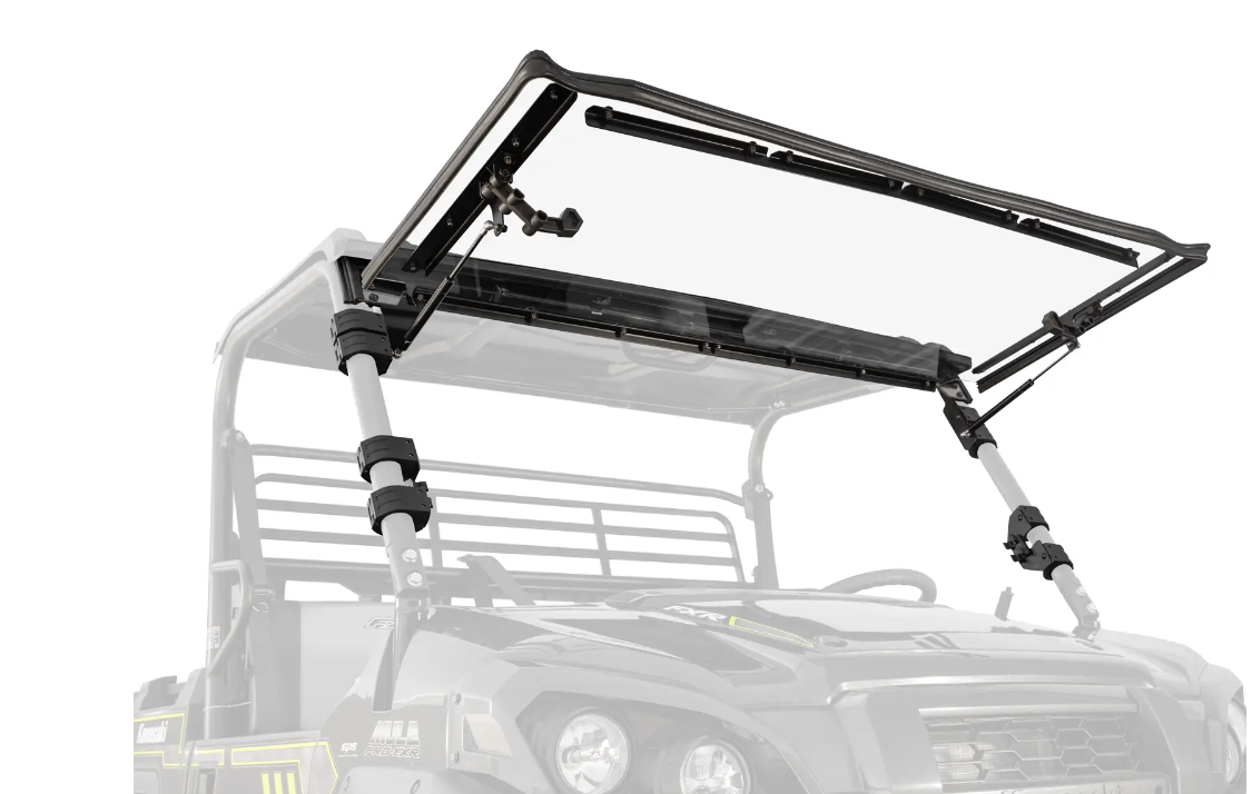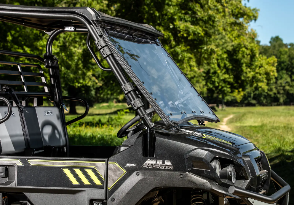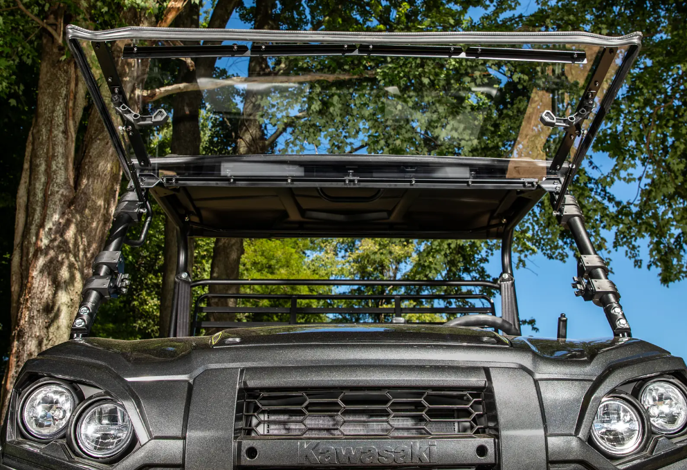 Don’t let Mother Nature dictate your riding schedule! Get SuperATV’s Scratch-Resistant Flip Windshield for your Kawasaki Mule Pro, and you’ll be riding in comfort all year long. Its flip-up design allows you to control how much air comes into your cab. Flip it up for full airflow, use it in the vented position when you want a nice breeze without letting in the elements, or keep it fully closed when you’re in need of full coverage. Rain, wind, and cold temperatures are no match for the versatility that a SuperATV flip windshield provides.