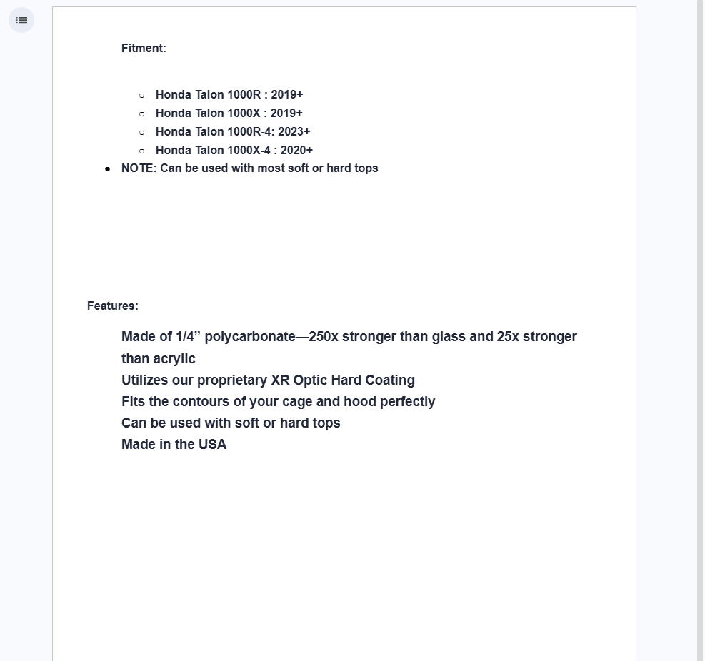 - Honda Talon 1000X : 2019+