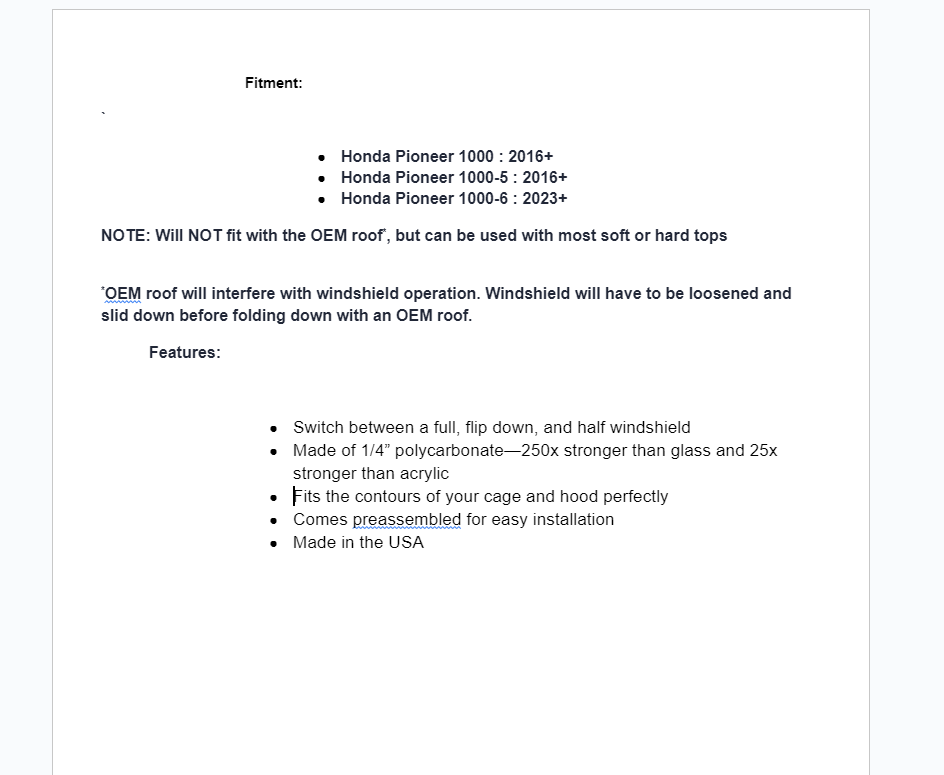 SuperATV Scratch Resistant 3-IN-1 Windshield For Honda Pioneer 1000/1000-5/1000-6