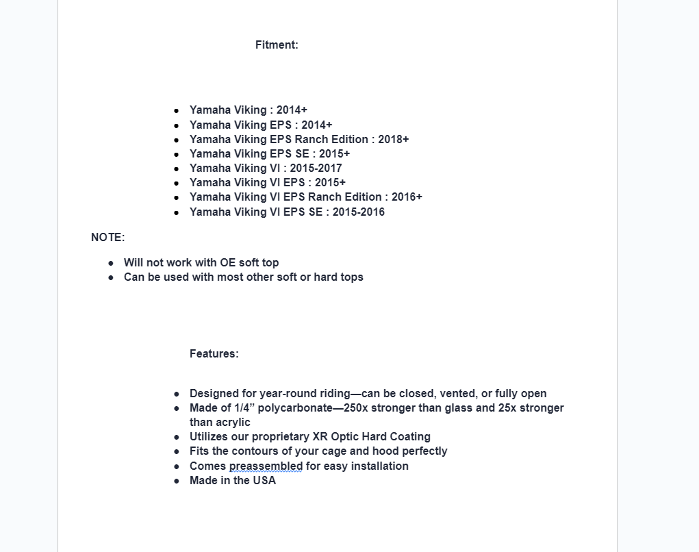There’s no need to cancel your plans because of the weather when you have a Scratch Resistant Flip Windshield installed on your Yamaha Viking. It switches between full, half, and vented so you’re always prepared no matter what nature throws at you. Set your windshield the way you want right from your seat and stay comfortable.