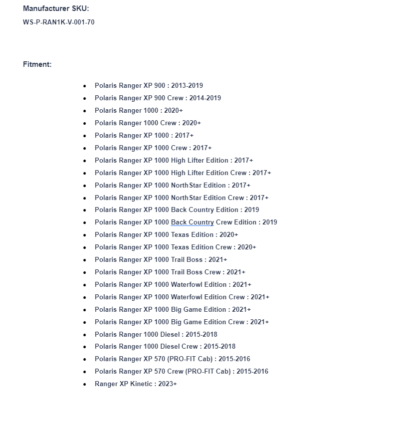 - Polaris Ranger XP 900 Crew : 2014-2019