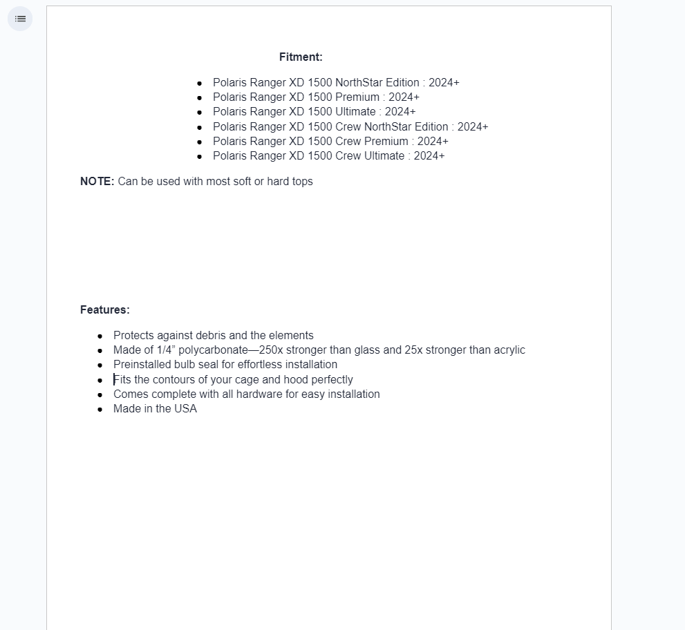 - Polaris Ranger XD 1500 Crew Premium : 2024+