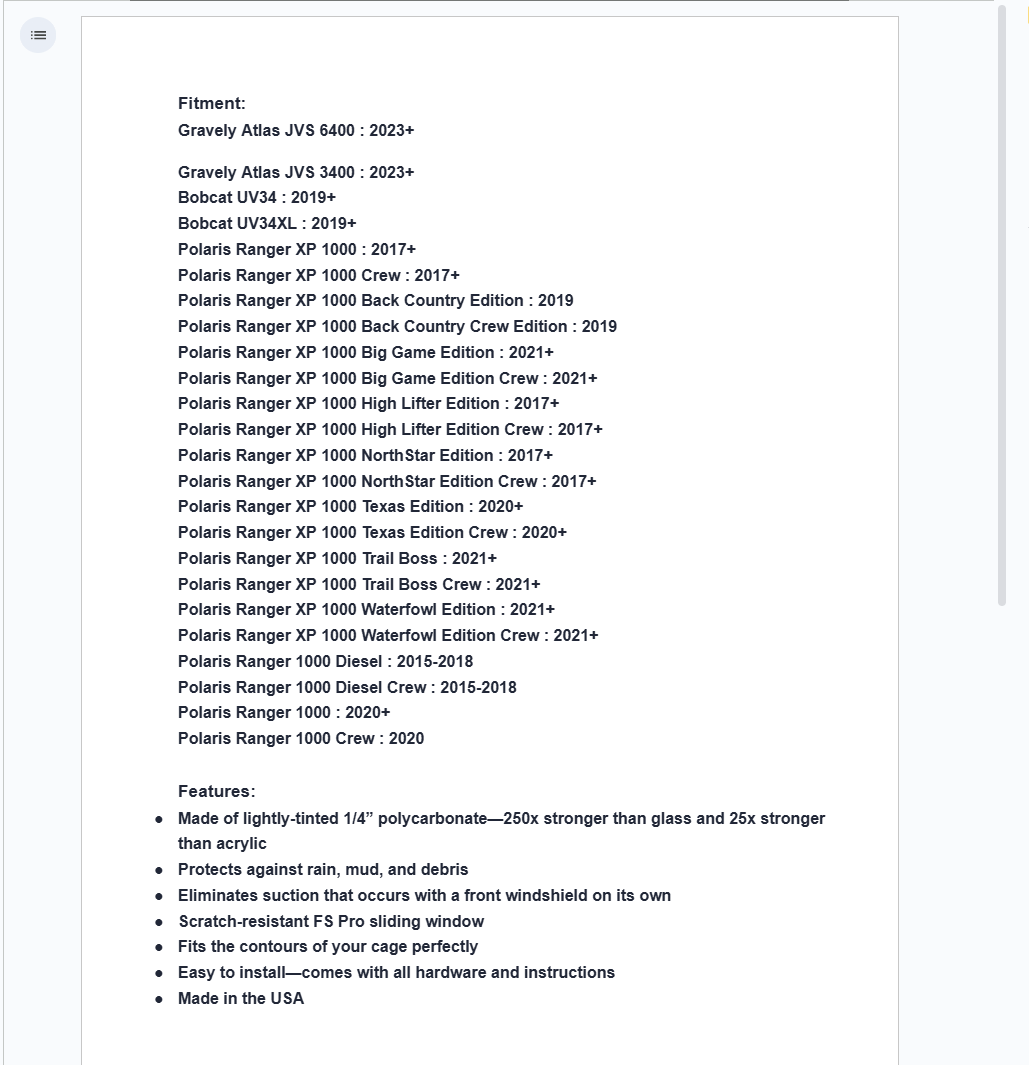 SuperATV Sliding Rear Windshield For Gravely Atlas, Bobcat, Polaris Ranger -Read