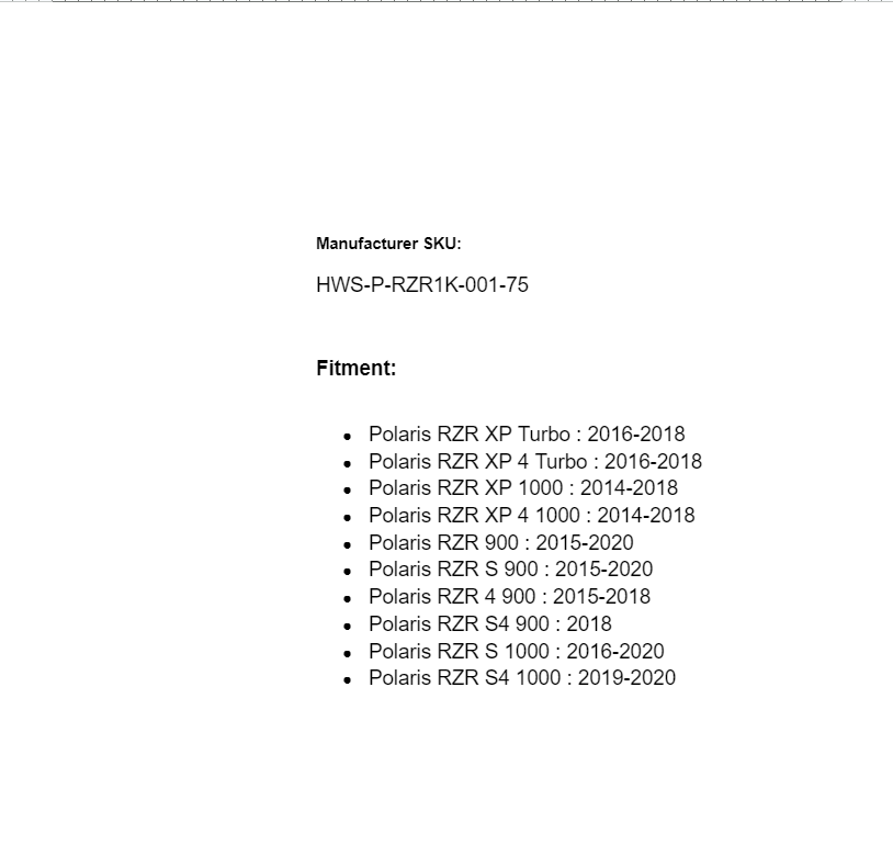 | Polaris | RZR S 900 | EPS | 2019 | |